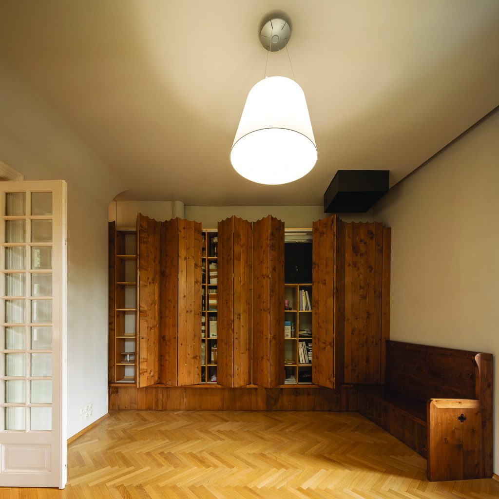 The project speculated this «hinge» location in between educational and residential functions to create a link with Cervantes High School so as to facilitate apartnership inarchitectural curricula. Understanding the context helped generate public fusion and connection with the neighbourhood. The small house, with a footprint of 118sqm, has the typical subdivision for so called «wagon-houses» of the city, with communicating rooms by glass-doors, the first floor with bedrooms, underground and attic used just for annexes. We worked for densification but in respect of this, as we did not want to touch the integrity of the typology. The building, not inhabited for many years, was in a medium state of degradation due to water infiltrations.